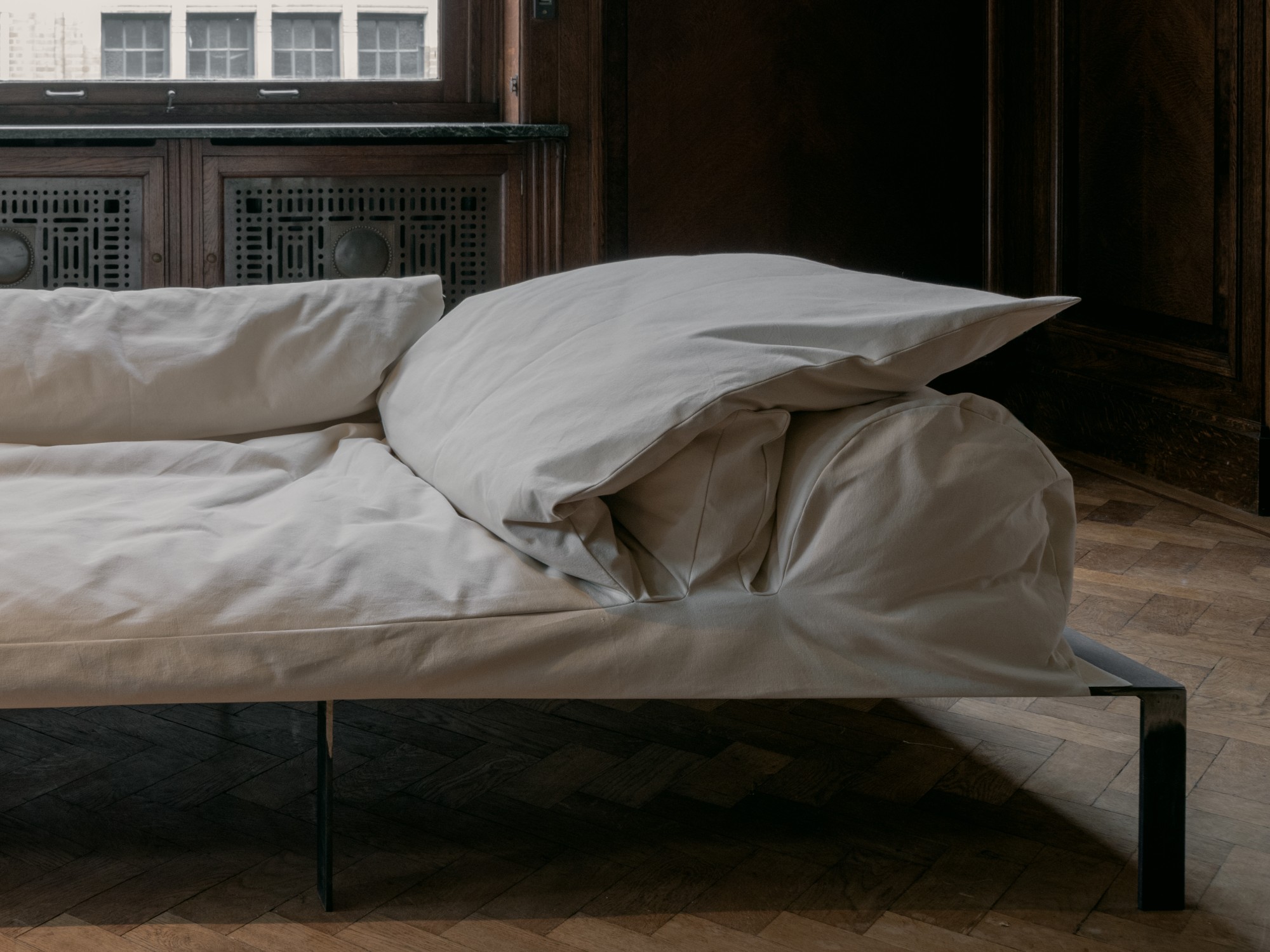 Steel, canvas, feather