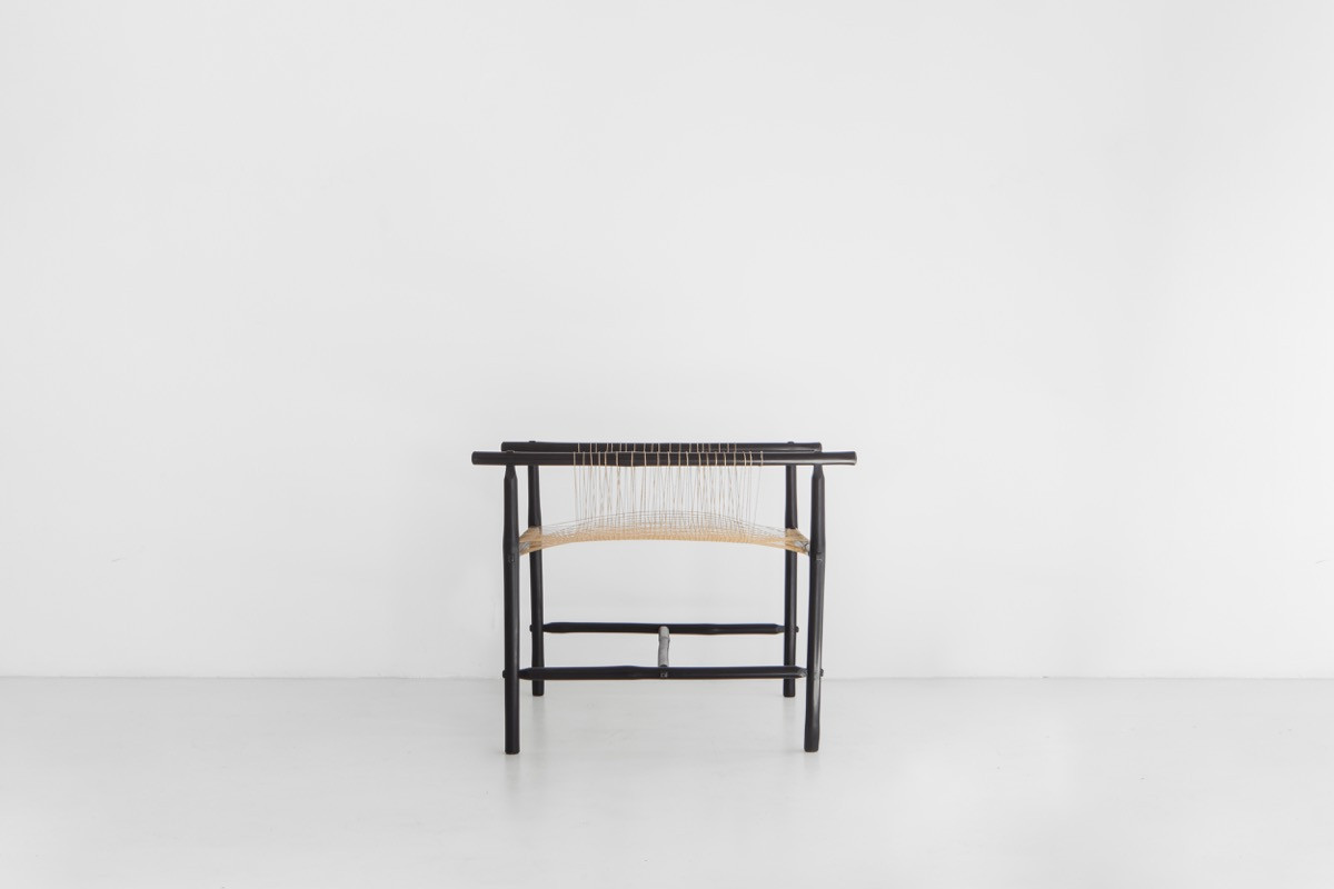Bamboo, indigo dyed, nistari silk ropes