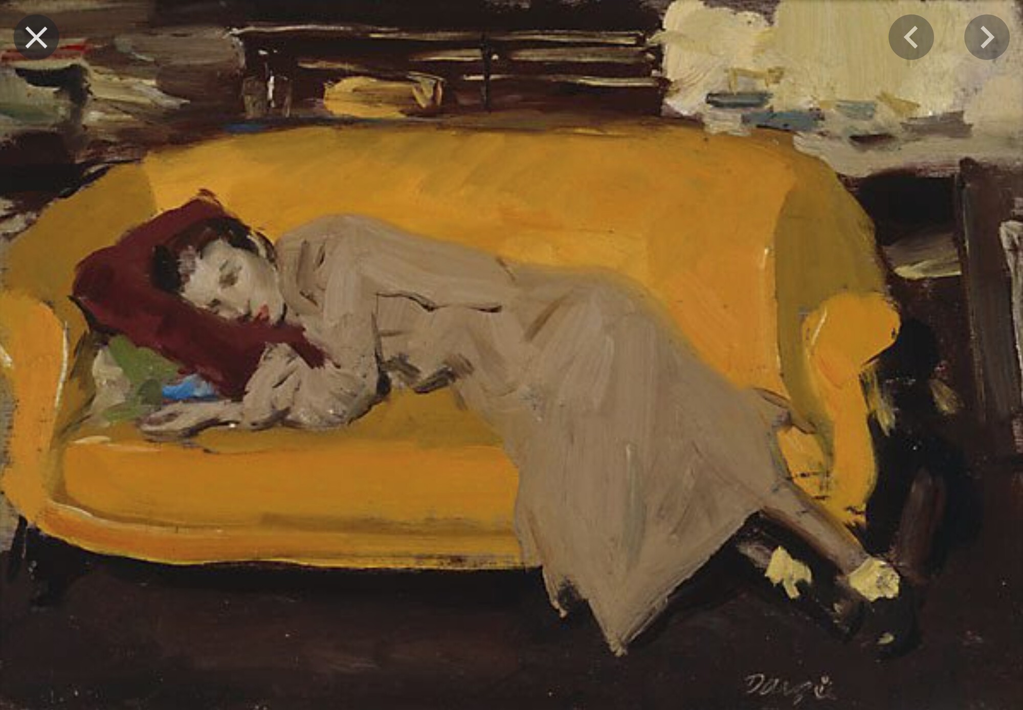 William Dargie, (1952), Yellow Couch, (Oil on Canvas)