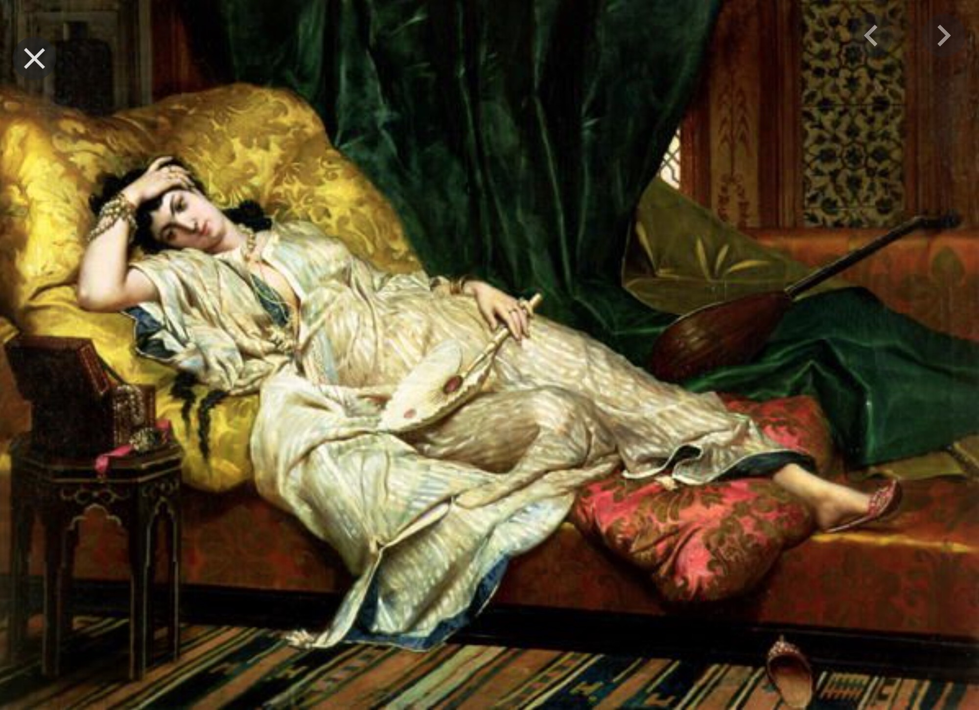 Hippolyte-Dominique Berteaux, (1876), Odalisque with a Lute, (Oil on Canvas)