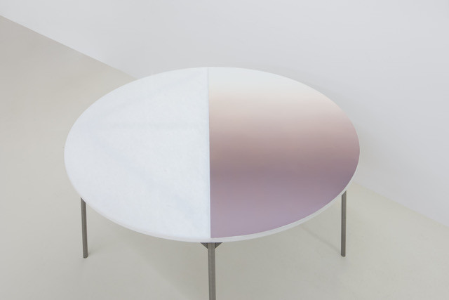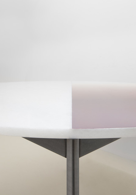 Steel structure, oil on marble table top (Bianco Neve)