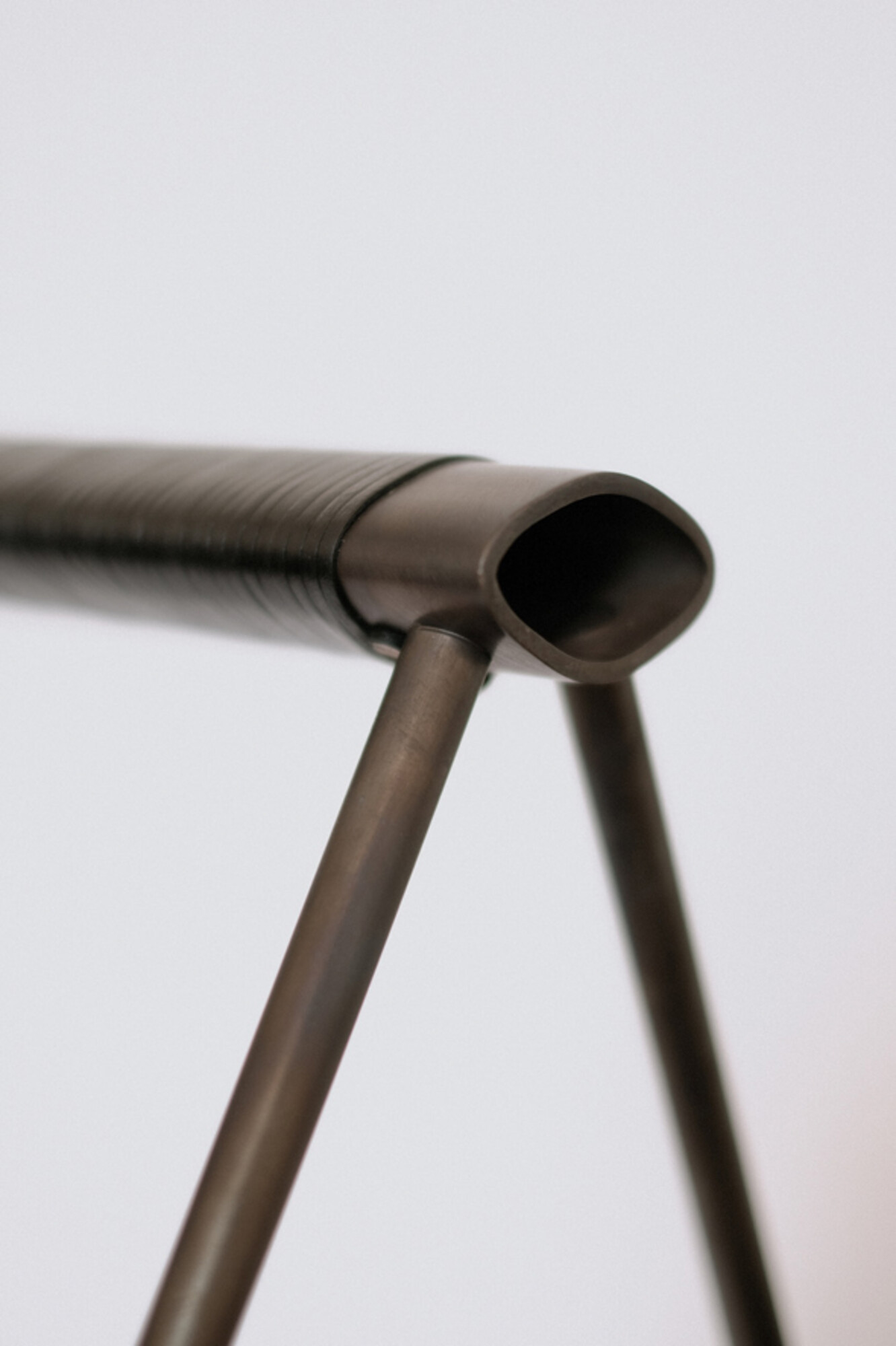 Oxidized brass, leather